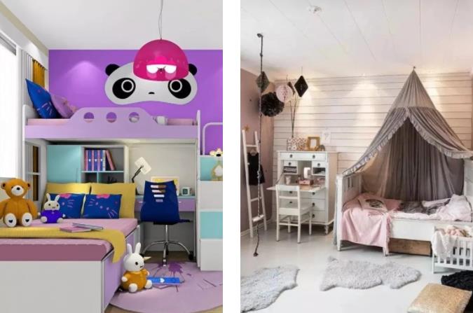 答應(yīng)我,以上請通通忘掉好嗎,別用自己的想象去代替寶寶的實際需求,用平常心和正常的審美對待兒童房就好,例如下圖,我更偏愛右邊的,你們覺得呢?